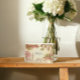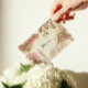Cartão de agradecimento de casamento romântico em Londres com uma silhueta de floral em aquarela, impresso em papel de linho premium e totalmente editável online.