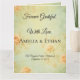 Expresse sua gratidão com estilo neste elegante cartão de agradecimento de casamento dobrado. Projetado para complementar a sua suite de papelaria de casamento completa, este cartão apresenta uma capa frontal personalizável, uma mensagem sincera no interior e espaço para um toque pessoal, como uma foto ou nota manuscrita. Impresso profissionalmente em papel cartão premium, oferece sofisticação e sentimento, transformando a sua apreciação em um objeto de recordação que seus entes queridos irão valorizar.