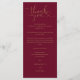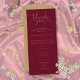 Um cartão de agradecimento de recepção de casamento em script de coração elegante em burgundy e dourado. Personalizado com sua mensagem especial de agradecimento em tipografia estilosa. Um agradecimento especial para seus convidados. Criado por Thisisnotme©