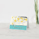 Cartão de nota de agradecimento de casamento floral personalizado com flores de magnólia amarelas turquesa, apresentando um belo ramo de magnólia com flores amarelas, botões, um pássaro e cor sólida turquesa na parte inferior. Marfim, amarelo, turquesa, preto, cinza. Ótimo para um casamento de primavera ou verão.