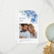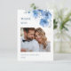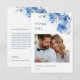 Flores de arte fina em aquarela azul em uma foto personalizada com um texto de agradecimento alinhado à esquerda.