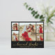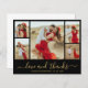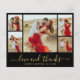 Modelo de Cartão de Casamento Moderno com 5 Fotos em Colagem, Agradecimento Acessível em Dourado e Preto. Cartão de casamento elegante e minimalista com cinco (5) fotos em grade na frente e uma caligrafia cursiva "Amor e agradecimento" em uma fonte com cauda florida manuscrita. Personalize seu nome e mensagem de agradecimento.