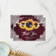 Agradeça aos seus convidados por compartilharem do seu dia especial com esses elegantes e românticos cartões de agradecimento de casamento rústico de girassol borgonha. Itens correspondentes disponíveis.