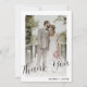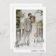 Este design de cartão de agradecimento de casamento com foto apresenta uma sobreposição de roteiro de tipografia arejada com espaço para 2 fotos e uma mensagem personalizada no verso. Clique no botão personalizar para mais flexibilidade na modificação do texto ou movimentação dos gráficos! Variações deste design, bem como produtos coordenados, estão disponíveis em nossa loja, zazzle.com/store/doodlelulu. Entre em contato conosco se você precisar deste design aplicado a um produto específico para criar seu próprio item exclusivo! Muito obrigada por visualizar um design DoodleLulu by 2 june bugs!