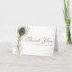Cartão de agradecimento elegante e caprichoso com pena de pavão. Este é parte de um conjunto de casamento "Penas de Pavão". Itens correspondentes estão disponíveis.