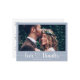 Este cartão de agradecimento de casamento elegante tem uma foto na frente com uma sobreposição de texto de Amor e Agradecimento e os nomes do casal. O verso tem sua própria mensagem pessoal, endereço de retorno e espaço para o endereço de envio.