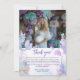 Expresse sua gratidão com este cartão de agradecimento de foto encantador, apresentando o design encantador da pequena sereia. Perfeito para enviar agradecimentos calorosos aos seus convidados, este cartão apresenta uma cauda de sereia iridescente e um fundo com tema marinho, juntamente com espaço para uma foto pessoal. As cores pastéis suaves e elementos caprichosos criam um toque mágico, tornando-o uma escolha ideal para um agradecimento memorável e sincero. Seja para um chá de bebê ou qualquer outra ocasião especial, este cartão de agradecimento certamente deixará uma impressão duradoura.