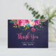 Cartão de Agradecimento de Chá de Noiva Boho Rústico Rosa Floral Aquarela Azul Marinho Lousa