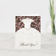 Nota de agradecimento de vestido de noiva trendy apresenta um conjunto de vestido de noiva elegante em um fundo de damasco marrom e rosa. Convites de chá de noiva combinando, selos postais e adesivos disponíveis em nossa loja em www.celebrateitweddings.com. Também disponível em uma grande variedade de cores. Personalize com suas informações e você estará pronto para começar! ©Tracy Ann Digital Art