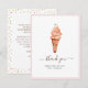 Lindo cartão de agradecimento de chá de panela de noiva de sorvete com o nome da noiva e mensagem de agradecimento no verso, apresentando ilustração de cone de sorvete com aliança de noivado no topo em aquarela. Você pode excluir a mensagem e incluir sua própria mensagem ou excluir.