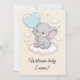 Não há maneira mais doce de dizer “Bem-vindo, Bebê” do que com este cartão de chuvada de bebê adorável. Um pequeno elefante fofo senta-se em uma nuvem fofa, segurando um balão de coração azul, cercado por estrelas pastéis — a mistura perfeita de macio e aconchegante. Personalize com o nome do bebê para torná-lo ainda mais especial. Ótimo para uma chuvada de bebê menino, como lembrança ou apenas para adicionar um pouco mais de amor ao seu presente.
