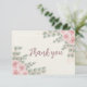 Envie gratidão sincera com este cartão de agradecimento de chuveirinho de noiva floral rosa elegante, projetado para complementar perfeitamente o convite correspondente. Com um fundo de aquarela em marfim suave e delicadas rosas de jardim rosa e raminhos de eucalipto em cascata nos cantos opostos, o design adiciona um toque romântico e gracioso. Ideal para noivas que desejam expressar apreço com estilo.