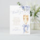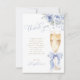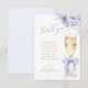 Envie seus agradecimentos sinceros com este cartão de agradecimento elegante com escrita graciosa e um laço azul poeirento macio amarrado a um copo de champanhe e flores azuis.