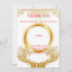 Expresse gratidão em um estilo atemporal com este cartão de agradecimento de design de ouro elegante em um fundo branco limpo. Com detalhes ornamentais de ouro luxuoso, este cartão personalizável é perfeito para temas de casamento clássicos, modernos ou minimalistas e complementa seu conjunto de papelaria coordenado.