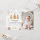 Cartão de agradecimento de festa de aniversário com árvore de Natal dourada