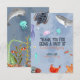 Este cartão de agradecimento com tema submarino apresenta ilustrações adoráveis de baleia, tartaruga, polvo, cavalo-marinho e peixes, criando um tema subaquático fofo e vibrante. O design não é apenas personalizável, mas também perfeito para a festa de aniversário das crianças. Deixe o espírito do oceano perdurar um pouco mais com esses cartões de agradecimento encantadores, tornando a celebração de aniversário do seu filho ainda mais memorável para todos os envolvidos