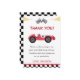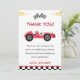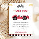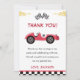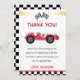 Cartão de agradecimento de festa de aniversário de menino com carro de corrida