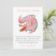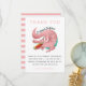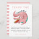 Cartão de agradecimento de festa de aniversário infantil com tema de jacaré fofo, apresentando ilustração de um jacaré rosa com um chapéu de festa na cabeça. O texto diz "chomp chomp". O texto padrão agradece os convidados pela celebração e pelo presente. Personalize este produto adicionando seu nome na parte inferior. Ótimo para uma festa de aniversário de menina no verão.