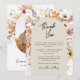 Pronto para celebrar com estilo? Nosso cartão de agradecimento de formatura com flores silvestres boho está repleto de charme floral. Ele apresenta um design floral em aquarela, 1 foto no verso e tipografia moderna. Personalize adicionando sua foto, nome, escola e outros detalhes. Encontre convites combinando na minha loja. Fotos por prostooleh / Freepik.