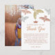 Expresse sua gratidão pela generosidade de familiares e amigos com nosso cartão de agradecimento de formatura chic e boho. Adornado com belas cores boho e arte popular desenhada à mão, este cartão é um símbolo perfeito de apreciação. Adicione sua foto favorita do formando na parte de trás do cartão para uma lembrança doce! Cada cartão apresenta bonés de formatura e pássaros voando, simbolizando a emocionante jornada que está por vir. Com amplo espaço para uma mensagem de agradecimento personalizada e assinatura, é uma maneira elegante e única de mostrar sua gratidão. Celebre esse marco com um toque moderno no tradicional cartão de agradecimento.