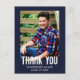 Cartão postal de agradecimento de formatura com foto de borda azul.