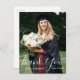 Cartão de agradecimento de formatura com foto de graduado moderno de roteiro branco. Para personalização adicional, clique no botão "Personalize" e use nossa ferramenta de design para modificar este modelo.