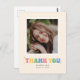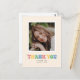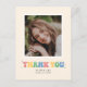 Agradeça a amigos e familiares por se juntarem à sua celebração de formatura com estilo com este cartão de agradecimento de uma única foto. Ele apresenta espaço para uma foto sobre as palavras "obrigado" escritas em letras balão em cores pastéis.