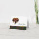 Lindo cartão de agradecimento de casamento, feito em branco, com um coração recortado com borda em tom dourado, como moldura para sua fotografia. O xadrez escocês tradicional do clã Stuart percorre a parte inferior do cartão, com uma borda em faixa de tom dourado. O texto em verde escuro e preto é totalmente personalizável para adicionar sua própria mensagem.