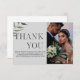 Este cartão de agradecimento personalizável é a maneira perfeita de expressar sua gratidão e apreço aos seus entes queridos após uma ocasião especial. O cartão apresenta um design minimalista com fundo branco e uma borda de folhas verdes em vários tons de verde. O centro do cartão é reservado para uma foto personalizada de sua escolha, tornando-o um item verdadeiramente especial e único. A foto é cercada por uma fina borda branca que se mistura perfeitamente com a borda de folhagens, e a mensagem "Obrigado" é escrita em uma fonte moderna e sofisticada, centralizada na parte inferior do cartão. Este cartão elegante e sofisticado é perfeito para qualquer ocasião, desde casamentos e chás de bebê até aniversários e aniversários de casamento. Basta adicionar sua foto favorita e uma mensagem personalizada para torná-lo verdadeiramente seu.