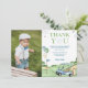 Este adorável cartão de agradecimento de foto de aniversário de 1 ano do menino do buraco de golfe apresenta um campo de golfe ondulado, com carrinho de golfe azul e bolsa, e um super fofo cabeçalho "Obrigado" HOLE IN ONE. Este cartão de agradecimento de foto de aniversário de GOLF é certo para completar qualquer festa de aniversário temática de HOLE IN ONE ou GOLF! Usando o software fácil de usar da Zazzle (sem necessidade de download) diretamente no seu navegador, você simplesmente compra e personaliza tudo no mesmo lugar. É tão fácil quanto isso!