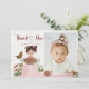 Expresse seus sinceros agradecimentos com este adorável cartão de foto 'Muito Obrigado', perfeito para os convidados do aniversário do seu filho! Este charmoso design apresenta uma menina doce em aquarela com morangos, uma borboleta e um caracol, todos emoldurando um espaço precioso para a foto de aniversário favorita. O cartão traz a mensagem calorosa, "Muito obrigado por vir e tornar minha festa de aniversário muito especial! Com amor, Michaela", e inclui uma brincadeira divertida "VOCÊ FOI UM CARACOL!" no verso. Totalmente personalizável com a foto e o nome do seu filho, este cartão foi projetado para sua conveniência: disponível como um cartão impresso lindamente ou como uma versão digital prática para download, garantindo que você sempre possa compartilhar sua gratidão, mesmo se você acabar com as cópias impressas. Ele complementa perfeitamente
