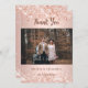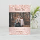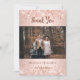 Um cartão de agradecimento de casamento moderno com foto. Um fundo gradiente rosa dourado decorado com confetes. Personalize e adicione sua foto e nota de agradecimento.
