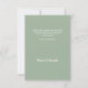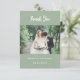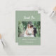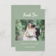 Celebre seu dia especial e expresse sua gratidão sincera com nossos Cartões de Casamento com Foto Personalizados, elegantemente projetados com um fundo sofisticado e moderno em verde salvia. Perfeitos para compartilhar suas memórias favoritas de casamento, esses cartões são elegantes e pessoais, oferecendo uma maneira única de agradecer a seus convidados. Personalize e adicione sua foto e nota de agradecimento. Texto branco.