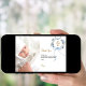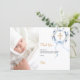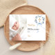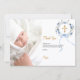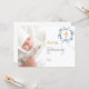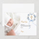Um cartão de agradecimento de batismo moderno e elegante. Um fundo branco chic decorado com uma grinalda floral azul aguada, um laço e uma cruz dourada. Personalize e adicione sua foto da criança, nota de agradecimento e nome.