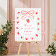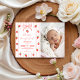 Expresse sua gratidão com um toque pessoal usando este cartão de agradecimento de foto "Morango Primeiro". Sua foto favorita da festa é emoldurada por deliciosos morangos em aquarela e um laço rosa suave, criando um memorável duradouro para seus convidados. É o toque final perfeito para uma celebração de morango com tema coquette, combinando arte de alta qualidade com uma foto preciosa do seu pequeno.