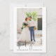 Cartão de agradecimento de foto do dia do casamento. Com fontes modernas e sua imagem destacada em um fundo branco mutável. Mensagem personalizada no verso. Kimberly Brett.