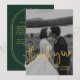 Expresse sua gratidão e agradeça a seus convidados pela presença e pelos belos presentes com este cartão de foto personalizável com um cartão de agradecimento moderno e elegante em ouro e verde esmeralda que combina com o tema do seu casamento. Basta adicionar suas fotos de casamento favoritas e escrever sua própria mensagem de agradecimento.