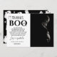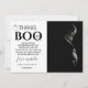 Envie uma nota assustadoramente doce de agradecimento com este cartão de agradecimento de foto de chá de bebê de Halloween! Com gráficos temáticos de Halloween adoráveis, como fantasmas, abóboras, morcegos e cores festivas, este cartão inclui espaço para uma foto pessoal do seu pequeno fantasma ou da celebração do chá de bebê.