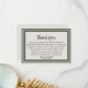 Uma maneira bonita de homenagear a vida de um ente querido é enviar cartões de agradecimento àqueles que compareceram ao serviço ou ajudaram você em seu momento de luto. Este cartão de agradecimento elegante e simples com uma borda verde clássica torna as coisas um pouco mais simples para você durante a temporada difícil. Use a mensagem de agradecimento já fornecida ou crie sua própria mensagem personalizada.