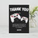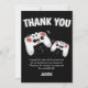 Envie um cartão de agradecimento super especial para os seus amigos, agradecendo a presença deles na sua festa e gratidão pelos presentes. Apresenta dois controles de jogos sobre um fundo preto, com texto divertido que diz "OBRIGADO" e "eu gostei do bolo e do presente também, mas minha parte favorita foi ver você! OBRIGADO POR VIR À MINHA FESTA E PELO PRESENTE MARAVILHOSO" e "NOME DELES. Todos os estilos de fonte e cores de fundo podem ser alterados clicando no link personalizar ainda mais após a personalização.