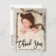 Cartão de agradecimento de novo bebê com letra cursiva branca moderna - Letra preta