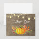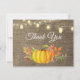 Cartão de agradecimento de outono com abóbora de outono em aquarela rústica. Fundo de aniagem. Celeiro retrô vintage country. Luzes de corda. Amor e gratidão, fonte de caligrafia bonita. Adicione sua mensagem no verso ou deixe em branco e escreva à mão. Para personalização adicional, clique no botão "Personalize" e use nossa ferramenta de design para modificar este modelo.