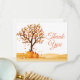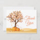 Cartão de agradecimento de outono com árvores e abóbora. Fundo Branco. Letras Laranjas. Amor e gratidão, fonte de letra cursiva bonita. Adicione sua mensagem no verso ou deixe em branco e escreva à mão. Para personalização adicional, clique no botão "Personalize" e use nossa ferramenta de design para modificar este modelo.