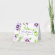 Cartão de agradecimento em aquarela com Pansies roxas e verdes. Incluí um modelo de texto que pode ser facilmente alterado de acordo com suas preferências de informação, fonte e cor. Altere o Agradecimento com sua própria mensagem para torná-lo sua papelaria pessoal. Deixei intencionalmente o interior em branco para deixar espaço para sua mensagem. Coordene com meus outros itens nesta coleção. Se precisar de ajuda ou se gostar do que vê, mas não encontrar o que precisa, entre em contato comigo para um pedido personalizado. Para problemas com seu pedido e envio, entre em contato com o Suporte ao Cliente da Zazzle através de https://goo.gl/nCgptf