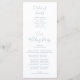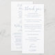 Um cartão de agradecimento de celebração de casamento azul empoeirado elegante, personalizado com sua mensagem especial de agradecimento em tipografia estilosa e programa de eventos e cortejo no verso. Um agradecimento especial para seus convidados. Concebido por Thisisnotme©