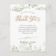 Este Cartão de Agradecimento de Recepção de Casamento de Aquarela Verde Dourado é ideal para uma celebração inspirada em boho. Com folhas de aquarela verde escuro e eucalipto, o design combina elegância rústica com um visual moderno de floresta. Personalize o cartão com seus nomes e uma mensagem especial de agradecimento.