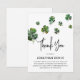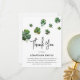 Agradeça familiares e amigos com este cartão de agradecimento temático irlandês simbólico. O design apresenta um fundo branco clássico decorado com trevos shamrock em aquarela verde, o título OBRIGADO e uma mensagem de agradecimento que pode ser facilmente personalizada.