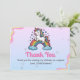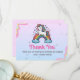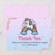 Diga “obrigado” com brilho e charme usando este Cartão de Agradecimento de Unicórnio! Com um fundo de arco-íris pastel suave, estrelas douradas e um unicórnio sorridente — o par perfeito para o seu convite de aniversário de unicórnio. Totalmente personalizável com o nome e a mensagem da sua criança. Ideal para aniversários de meninas e celebrações caprichosas