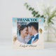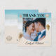 Capture a alegria da sua celebração à beira-mar com este cartão de agradecimento lindamente desenhado. Com suaves acentos de aquarela de conchas, ondas e folhas tropicais, e sua foto de casamento favorita, é a maneira perfeita de expressar gratidão após um casamento íntimo na praia ou destino. Personalize com nomes, data ou localização para um presente verdadeiramente sincero.