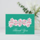 This beautiful botanical bridal shower thank you card features an exquisite cluster of delicate pink roses and charming rosebuds set against a vibrant color background The romantic floral arrangement creates a soft, elegant aesthetic perfect for celebrating love and new beginnings.